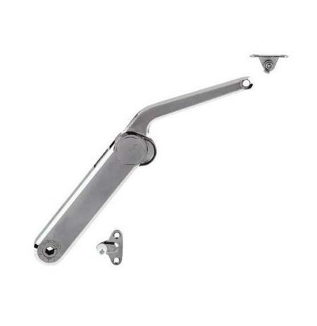 O articulador é fabricado em liga de zinco, o suporte de montagem e parafusos são em aço e possui capa plástica de acabamento para o parafuso de ajuste.